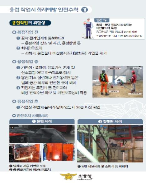 또 용접작업 예정시 안전관리자에게 사전 작업허가를 받도록 하고, 용접작업 시에는 소화기와 방지포(용접불티 비산을 방지하는 역할)를 비치하는 등 화재안전수칙에 대해 교육한다.