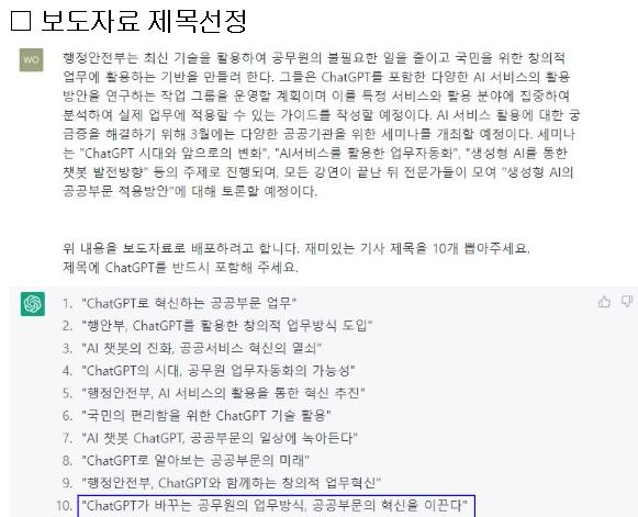 행정안전부는 공무원들이 초거대 인공지능을 업무에 활용할 수 있는 가이드를 상반기 내에 배포할 예정이다.