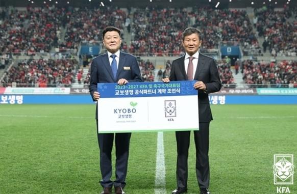 대한축구협회는 교보생명과 공식파트너 재계약을 체결했다고 29일 밝혔다. 계약기간은 2027년까지다.