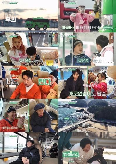 뒤이어 첫 여행지인 강원도 삼척의 해안도로를 달리는 하하버스가 포착됐다. 에메랄드빛 바다와 소박한 시골풍경이 보는 이의 감탄을 자아내는 가운데 하하버스는 시골길에서 만난 어르신들의 탑승을 돕는 모습.