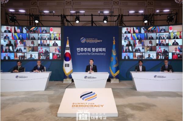 오늘 회의를 통해 대통령은 공동주최국 정상으로서 본회의 제1세션을 직접 주재함으로써 국제무대에서 자유, 민주주의, 인권 등 보편적 가치에 대한 실천의지를 보여주어 국제적 리더십과 국격을 높이는 계기가 됐다. 또한 대한민국의 정치·경제 역량의 우수성을 알려 국위를 높일 뿐 아니라 국제사회에 기여하는 외교를 한층 공고히 하는 무대가 됐다. 나아가 국제사회의 도움으로 민주화와 경제성장을 모두 달성한 한국이 이번 민주주의 정상회의를 주관함으로써, 앞으로 각종 다자외교를 통해 국제사회의 자유 연대를 주도하고 세계의 평화와 번영에 기여하는 발판을 마련했다.