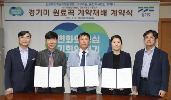 [한국뉴스타임=편집국] 경기도농업기술원은 31일 우리 술과 떡찌니 등 도내 2개 쌀 가공업체와 경기미 안정적 수급, 소비 확대를 유도하기 위한 경기미 원료곡 재배 계약을 했다.