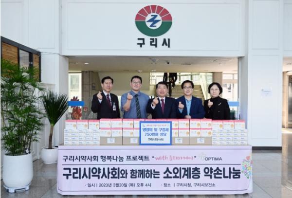 [한국뉴스타임=편집국] 구리시는 지난 30일 구리시청 2층 복지상담실에서 구리시약사회(회장 정선종)로부터 750만 원 상당의 종합영양제 200개와 구충제 500개를 전달받았다.