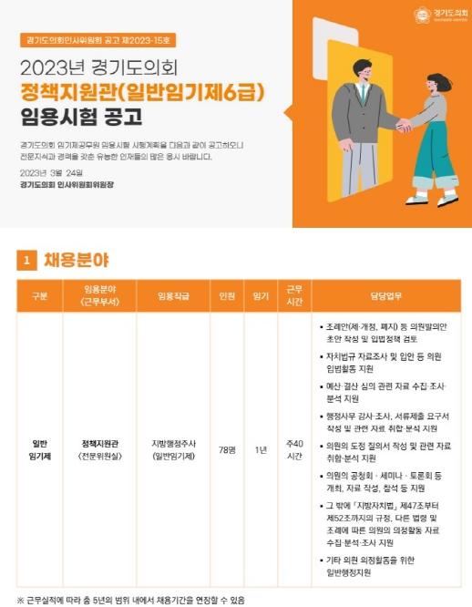 자세한 사항은 경기도의회 홈페이지 또는 경기도의회 정책지원관 채용홈페이지에서 확인하면 된다.