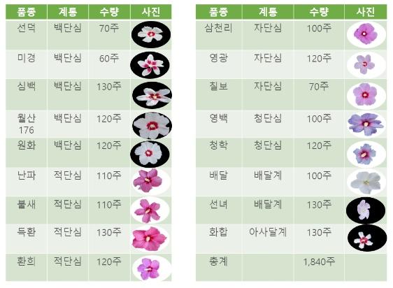 수목원은 1,100㎡ 면적에 총 18종 1,870그루의 국내 토종 무궁화 품종을 심어 무궁화원을 만들 계획이다. 이 가운데 30그루는 관내 안산 대동초등학교에서 기증된 30여 년 생 무궁화를 기증받아 심었다. 나머지 1,840그루는 무궁화 농장에서 구입한 것으로 4월 4일과 5일 양일간 무궁화 심기를 진행한다.