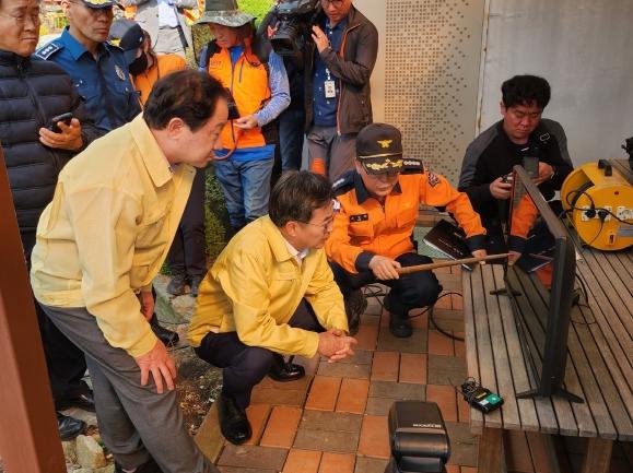 [한국뉴스타임=편집국] 주광덕 남양주시장은 3일 김동연 경기도지사와 함께 와부읍 팔당리 예봉산 산불 발생 현장을 방문해 산불로 인한 추가 피해를 방지하기 위해 산불 진화 작업에 총력을 기울일 것을 당부했다.