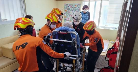 [한국뉴스타임=편집국] 가까워지는 불길 속 대전소방본부 소속 구급대원들은 신속하게 요양병원 어르신들을 119구급차로 이송했고, 경로당과 복지관 등으로 안전하게 대피시켰다.