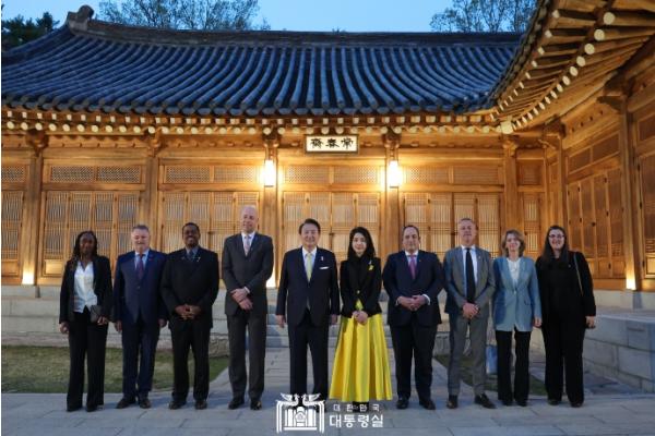 [한국뉴스타임=편집국] 윤석열 대통령 부부는 4. 3일 청와대 상춘재에서 BIE 실사단을 초청해 만찬을 함께했다.