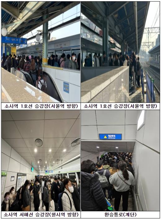 국민권익위의 현장조사 결과, 출근 시간대 서해선에서 수도권 1호선(서울역 방향)으로 환승 승객이 일시에 몰려 통로·계단·승강장이 상당히 혼잡했다.