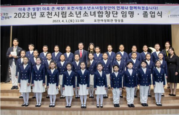 (재)포천문화재단은 지난 4월 1일 포천 여성회관 청성홀에서 포천시립소년소녀합창단의 신입단원과 졸업단원에게 임명장 및 졸업장 수여식을 개최했다.