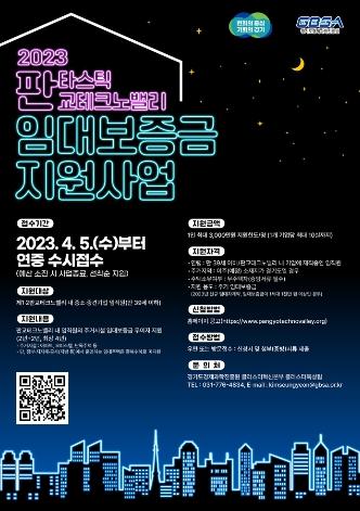 [한국뉴스타임=편집국] 경기도와 경기도경제과학진흥원은 판교테크노밸리에서 근무하는 20~30대 근로자의 주거 안정과 통근 시간 절감을 위해 최대 3천만 원을 지원하는 ‘2023년 판교테크노밸리 임대보증금 지원사업’을 추진한다.