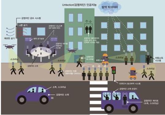 건물 내 또는 거리에서는 로봇과 드론을 이용해 실시간으로 감염 의심자와 확진자를 발견한 뒤 방역당국으로 전송하고 인공지능이 분석하는 ‘스마트 역학조사 시스템’도 포함된다.