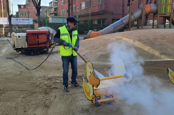 시는 도시공원 내 어린이놀이시설·휴게시설 등 주요 이용시설의 상태를 점검하고 공원 내 주요 시설물의 묵은 때를 벗겨내는 청소 작업을 진행하고 있다.