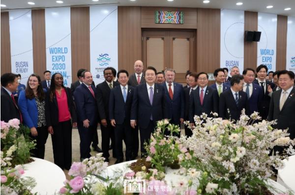 [한국뉴스타임=편집국] 윤석열 대통령은 4. 6일 부산 APEC 누리마루에서 개최된 국제박람회기구(BIE) 실사단 환송 만찬에 '깜짝' 방문했다.