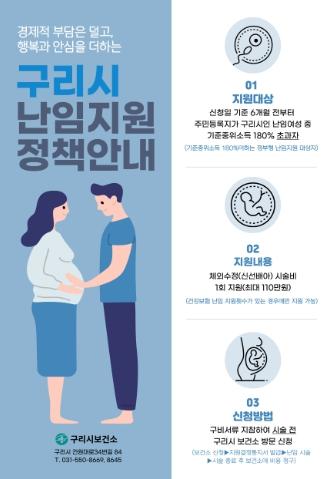 백경현 구리시장은 “임신·출산을 희망하는 부부를 적극 지원하는 지역사회의 지지기반 마련이 중요하다.”며, “출산 및 양육 친화적인 환경을 조성하여 저출산 시대를 극복하고 ‘아이 키우기 좋은 도시 구리시’를 만들 수 있도록 행정력을 집중하겠다.”고 전했다.
