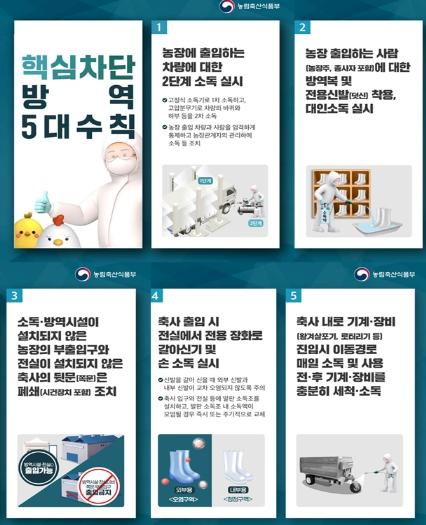 농식품부는 아직 북상하지 않고 일부 남아있거나, 우리나라를 경유하는 철새 중 감염된 개체에 의해 주변 환경이 오염될 수 있으며, 농장주 또는 종사자가 방역수칙을 준수하지 않을 경우 언제든지 농장 내로 오염원이 유입될 수 있으므로 가금농장은 경각심을 가지고 핵심 방역수칙을 철저히 준수해야 한다고 강조했다.
