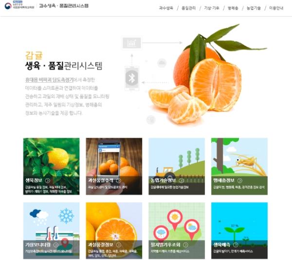 노지 감귤의 싹 트는 시기와 꽃 피는 시기, 꽃이 피는 양, 열매 커짐, 시기별 당도와 산도 등 14개 지역의 생육 조사 결과는 ‘과수생육품질관리시스템(감귤)’에서 확인할 수 있다.