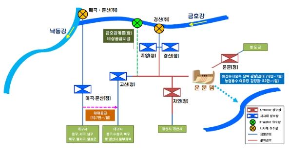 또한 환경부는 대구시 등과 협의를 통해 운문댐에서 공급하는 생활?공업용수(30.7만톤/일) 중 일부를 낙동강 하천수로 대체 공급하여 운문댐 용수를 비축한다.