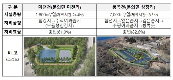 이번에 대청호 상류 유역에 설치되는 저감시설은 모래를 이용한 여과방식을 적용하여 녹조 발생의 원인물질인 총인(T-P)을 60~80%까지 저감시킬 수 있으며, 대청호 상류 2곳(미천천, 품곡천)에 설치되어 내년 4월에 준공될 예정이다.