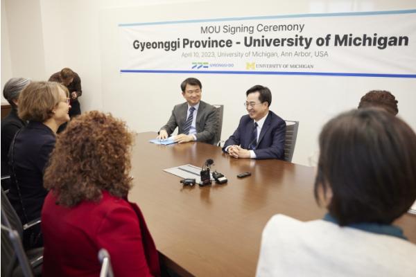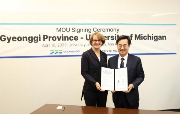 김동연 경기도지사는 현지시각 10일 오후 2시 30분 미국 미시간주 앤아버(Ann Arbor)시에 위치한 미시간대학교에서 로리 맥컬리(Laurie McCauley) 미시간대학교 부총장과 이런 내용을 담은 ‘경기도 ? 미시간대학교 문화 ? 교육 협력을 위한 협약서’에 서명했다.