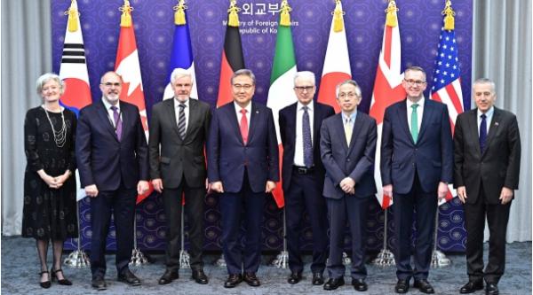 [한국뉴스타임=편집국] 박진 외교장관은 4.10일 G7(주요 7개국 협의체) 주한대사 초청 만찬을 개최하여 한국이 올해 5월 G7 정상회의에 초청된 것을 환영하며 히로시마 정상회의의 성공적 개최를 위해 G7과 적극 협력하고 전세계적 현안 해결을 위해 기여하겠다는 우리의 의지를 표명했다.