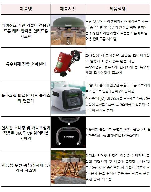 이번 혁신제품 시범구매는 종전의 균등배분 방식이 아닌 수출지원, 국가안보 위협 대응 등 국정현안 및 공공서비스 개선 등에 중점을 두고 대상을 선정하여 집중 지원하는 전략적 수요매칭을 시행했다.