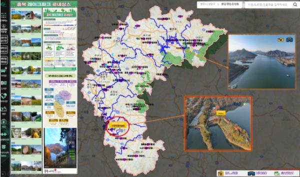 충청북도의 ‘충북 레이크파크 르네상스 구현을 위한 충북형 공간정보 구축’ 사업은 도내 호수?저수지 주변 관광지를 고품질 가상현실(VR360, 동영상)과 3차원으로 공간정보로 구축하여 체험형 모바일 서비스 및 관광 콘텐츠 개발에 활용하는 사업이다.
