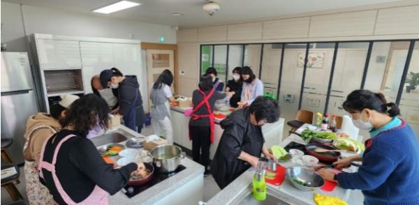 이번 교육에는 오남·별내건강생활지원센터 ‘요리조리 비만 탈출 교실’ 수강생과 저염, 저당 식이에 관심이 있는 시민 20여 명이 참여했으며, 간편하게 조리가 가능하고 건강하게 먹을 수 있는 참나물 소보로 덮밥과 양배추 말이 김치 조리법을 실습했다.