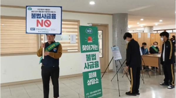 가정통신문 및 누리집을 활용해 학생들과 교직원 2만 5천여 명을 대상으로 안내했고, 학교 내 학생들이 자주 모이는 장소를 찾아가 상담소를 설치해 학생 128명과 불법 사금융 이야기를 나누며 질의응답을 주고받는 방식으로 진행했다. 캠페인을 통해 불법 대리 입금의 주요 위반유형, 피해사례, 처벌 규정 등의 내용이 담긴 안내판을 전시하고 홍보물 5천600부를 나눠줬다.