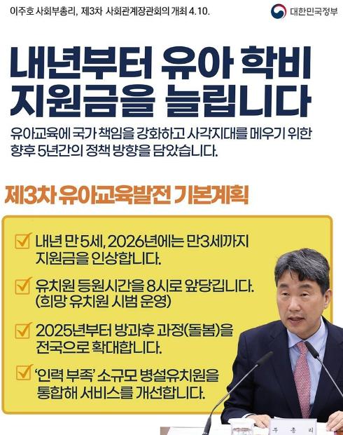 · 내년 만5세, 2026년에는 만3세까지 지원금을 인상합니다.