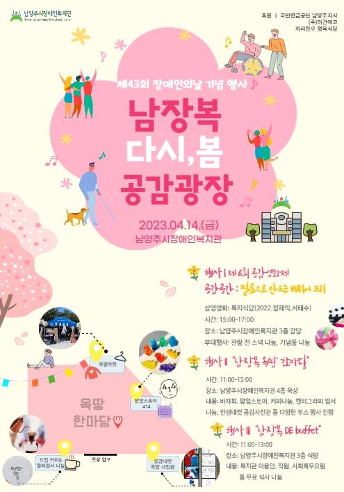 [한국뉴스타임=편집국] 남양주시장애인복지관은 오는 14일 장애인의 날을 기념해 제43회 장애인의 날 기념 '다시, 봄 공감 광장' 행사를 개최한다고 12일 밝혔다.