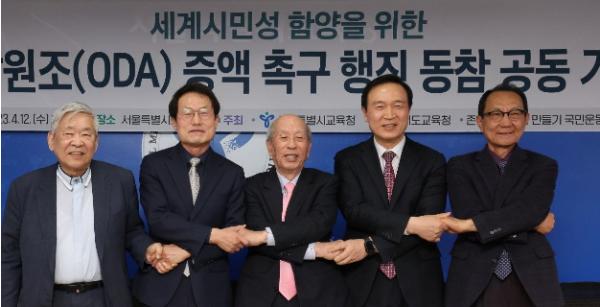 임태희 교육감은 이날 오후 ‘존경받는 나라 만들기 국민운동본부’가 주최하는 ‘공적개발원조(ODA) 증액 촉구’행진 동참을 위해 조희연 서울시교육감과 공동 기자회견을 가졌다.