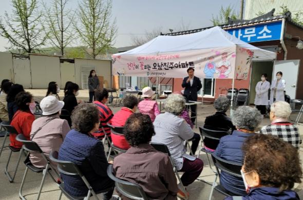 ‘건강이 꽃피는 오남진주아파트’는 매월 다른 주제로 진행되는 야외 프로그램으로, 어르신들의 건강을 고려해 한여름인 7~8월을 제외하고 4월부터 11월까지 월 1회 운영된다.