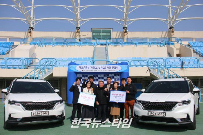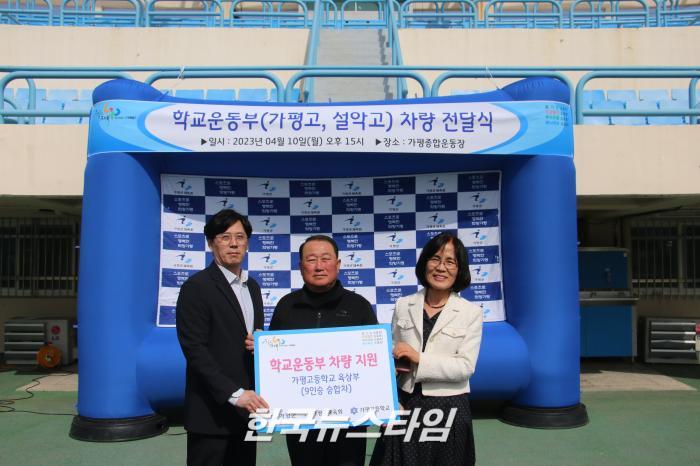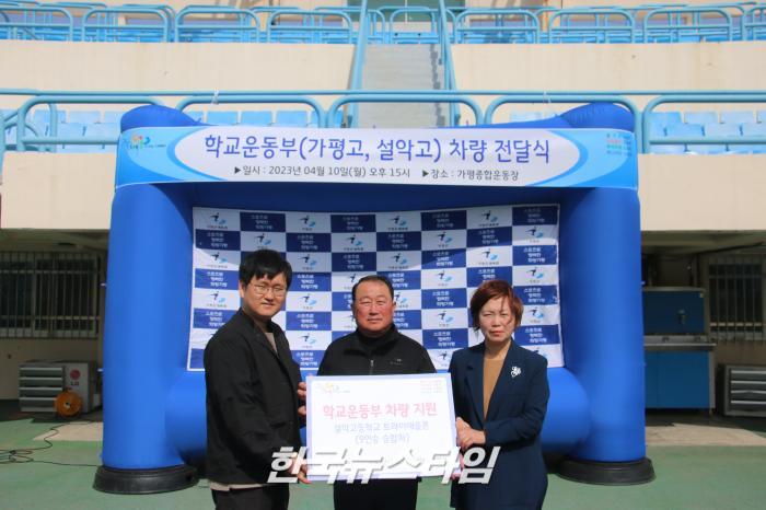가평군체육회는 10일 가평종합운동장에서 가평고등학교(육상), 설악고등학교(트라이애슬론) 학교운동부 대상으로 9인승 승합차량 전달식을 가졌다.