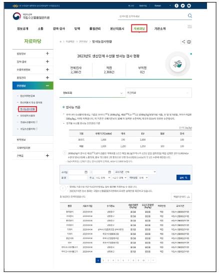 국립수산물품질관리원(원장 홍래형)은 4월 12일부터 국민들이 수산물 방사능 검사 결과를 더욱 쉽고 편리하게 확인할 수 있도록 더 나아진 ‘방사능 검사현황 서비스’를 제공한다.