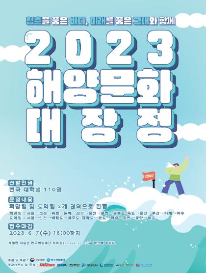 [한국뉴스타임=편집국] 해양수산부와 한국해양재단(이사장 문해남)은 4월 13일부터 6월 7일까지 ‘2023년 해양문화 대장정(이하 대장정)’ 참가자를 모집한다.