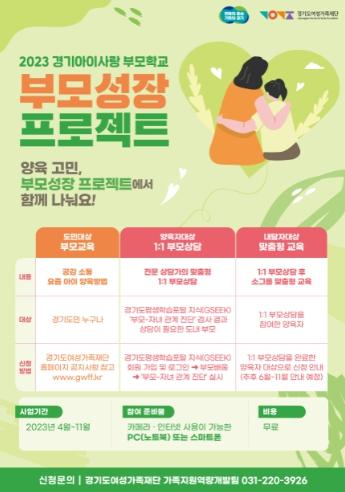 [한국뉴스타임=편집국] 경기도여성가족재단이 부모-자녀 관계 및 양육에 어려움을 느끼는 양육자에게 무료로 교육 및 상담을 제공하는 ‘부모 성장 프로젝트’를 실시한다.