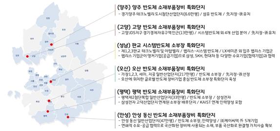 안성시와 오산시는 경기 남부의 앵커기업들이 위치한 화성-평택-용인-이천을 잇는 K-반도체 밸트 중심에 위치하고 있어, 소부장업체 유치를 통한 반도체 협력 생태계를 조성하겠다는 계획으로, 안성은 동신일반산업단지에 155만㎡, 오산은 가장지구와 세교3지구 등에 717만㎡의 계획을 수립했다.