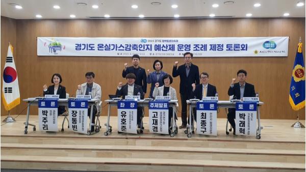 [한국뉴스타임=편집국] 유호준 경기도의회 도시환경위원회 의원(더불어민주당, 남양주6)이 좌장을 맡은 '경기도 온실가스감축인지 예산제 운영 조례 제정 토론회'가 4월 12일(수) 14시 경기도의회 대회의실에서 개최됐다. 본 토론회는 경기도와 경기도의회가 공동으로 주최하는 ‘2023 경기도-경기도의회 정책토론 대축제’의 일환으로 개최됐다.