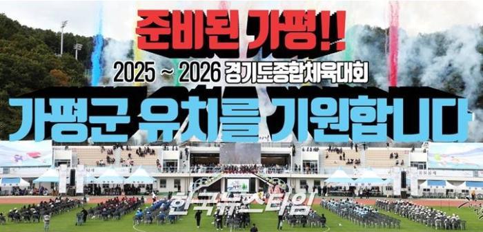 [한국뉴스타임=보도국] 2025~26년 경기도체육대회 가평군 유치가 확정적으로 김동연 경기도지사의 승인만 남은 것으로 전해졌다.