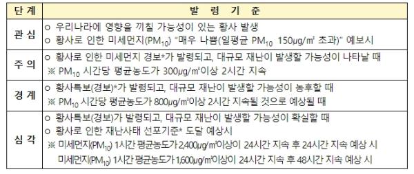 [한국뉴스타임=편집국] 환경부는 금일 17시 기준으로 미세먼지(PM10) 농도가 다소 낮아짐(시간당 평균 150㎍/㎥ 이하)에 따라 영남권(부산, 대구, 울산, 경북, 경남), 호남권(광주, 전북, 전남), 제주권(제주) 9개 시도에 발령됐던 황사 위기경보 ‘주의’ 단계를 ‘관심’ 단계로 하향 발령했다.