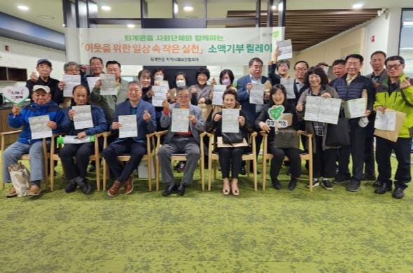 소액 정기 기부 릴레이는 퇴계원읍의 사회단체 회원들이 지역사회보장협의체에 매월 소액을 정기 기부하며 주위의 취약계층 등 어려운 이웃을 보살피는 데 보탬이 되고자 추진됐다.
