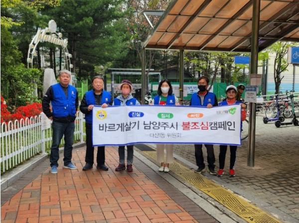 [한국뉴스타임=편집국] 바르게살기운동 남양주시협의회 다산1동위원회는 지난 16일 도농역에서 역을 경유하는 시민들에게 불조심을 촉구하는 캠페인을 진행했다.