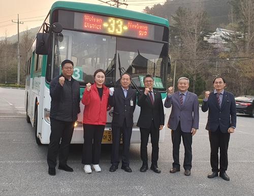 기존 월산리-내방리로 운행하던 33번 마을버스는 ‘월산리-몽골문화촌’으로 연장 운행하며, 기존 5대--'6대로 1대 증차했고, 회수 또한 30회--'33회로 3회 증차하여 운행된다.