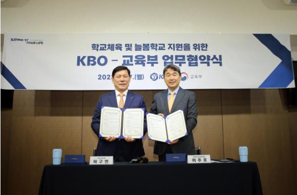 [한국뉴스타임=편집국] 교육부와 KBO가 학교체육 활성화를 위해 손을 잡는다. KBO는 17일(월) KBO에서 교육부와 학교체육 및 늘봄학교 체육 프로그램 활성화를 위한 업무 협약을 체결했다.