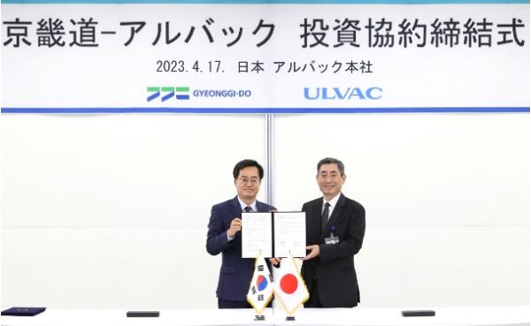 김동연 지사는 17일 오후 가나가와현 지가사키시 알박(ULVAC)그룹 본사에서 이와시타 세츠오(Iwashita Setsuo) 대표이사와 이런 내용을 담은 ‘경기도-주식회사 알박 투자양해각서’에 서명했다.