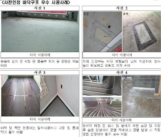 도는 이번 바닥 시공 품질점검 강화가 정부가 운영 중인 층간소음 사전인증제도와 사후확인제도를 보완할 수 있을 것으로 기대하고 있다. 사전인증제도는 바닥구조의 바닥충격음 차단 성능을 사전에 인정기관(한국토지주택공사·한국건술기술연구원) 시험실 등에서 평가하고, 성능을 인정받은 바닥구조만 설계·시공토록 하는 제도다. 다만 품질관리 측면에서 적정 수행 여부에 따라 층간소음이 크게 발생할 수도 있다.