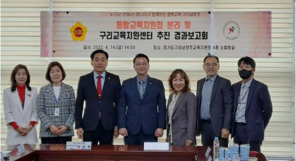[한국뉴스타임=편집국] 경기도구리남양주교육지원청은 14일 경기도의회 백현종 의원(국민의힘, 구리1)과 이은주 의원(국민의힘, 구리2)에게 구리교육지원센터 추진 경과를 보고했다. 이 자리에는 경기도교육청 이미용 행정관리담당관도 배석하여 통합 교육지원청 분리 추진 경과보고도 함께 진행됐다.
