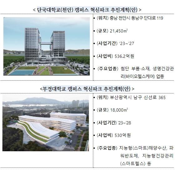 [한국뉴스타임=편집국] 국토교통부, 교육부, 중소벤처기업부는 2023년 캠퍼스 혁신파크 신규 후보지로 단국대학교(천안캠퍼스)와 부경대학교를 최종 선정한다고 밝혔다.