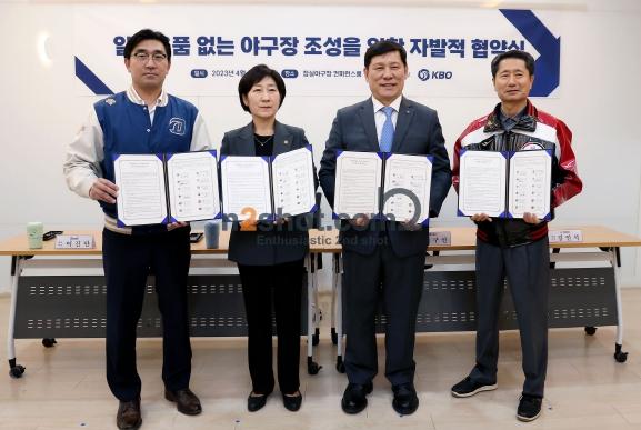 협약식은 NC-LG 경기가 펼쳐지는 잠실야구장에서 진행됐다. KBO 허구연 총재와 환경부 한화진 장관을 비롯해 NC 다이노스 이진만 대표이사, LG 트윈스 김인석 대표이사가 10개 구단을 대표해 참석했다. 이후 경기 시작에 앞서 각 기관의 원활한 협력을 기원하며 환경부 한화진 장관의 시구가 진행될 예정이다.